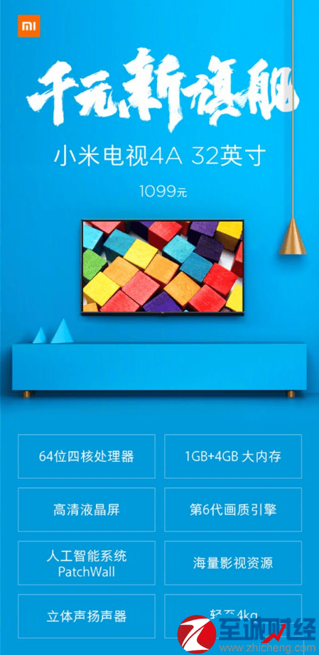 小米发布了小米电视4A 32英寸版,并称其为千元新旗舰,售价方面是小米电视4A 32英寸版的最大亮点。小米公布这款电视定价为1099元,这个价格可以说比目前市面上的旗舰机还要便宜很多。